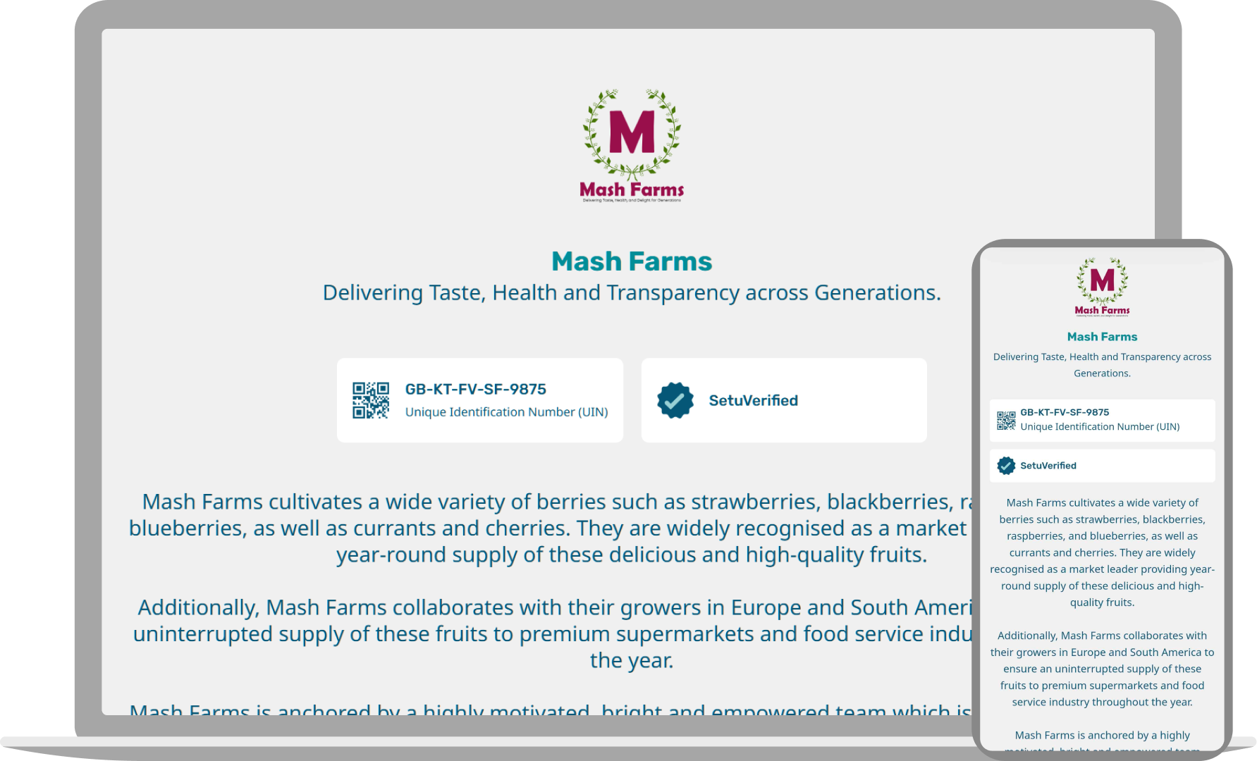 • The traceability page shows the grower profile and where the produce has come from. The page also shows what field activities were carried out to grow the produce. Over time, our ambition is to show the sustainability metrics through our traceability pages.
